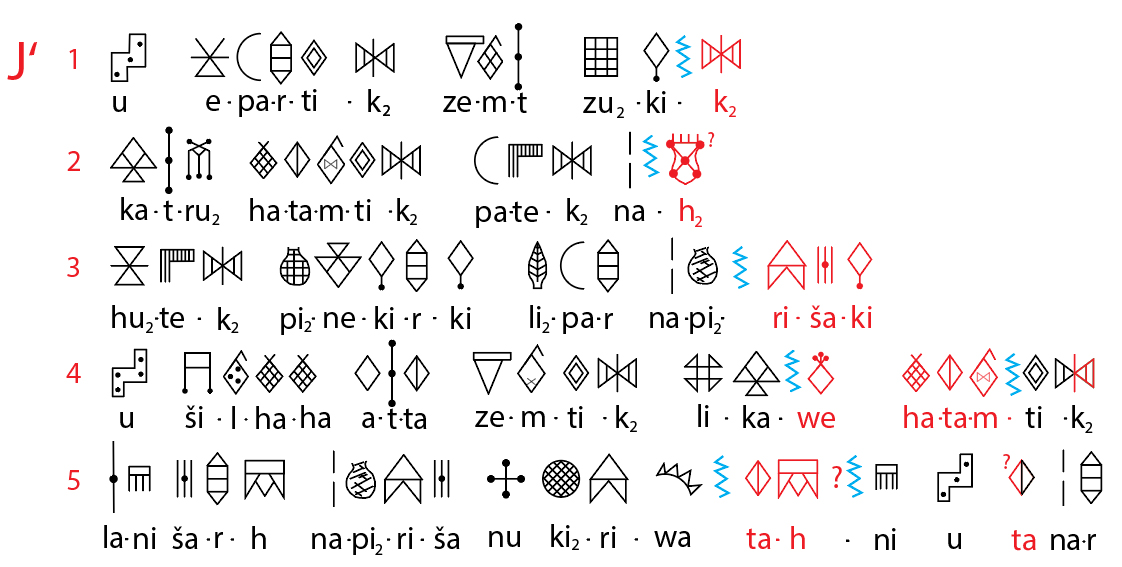 u e-pa-r-ti-k2 ze-m-t zu2-ki-[k2] ka-t-ru2 ha-ta-m-ti-k2 pa-te-k2 na-[h2]-hu2-te-k2 pi2-ne-ki-r-ki li2-pa-r na-pi2-[ri-ša-ki]